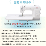 ![写真:ジャノメ 職業用ミシン [13HX 自動糸切あり] JANOME 蛇の目 HL針仕様 平針仕様 針糸通し機能あり スピード調整つまみあり](https://mymishin.com/wp-content/uploads/2026/04/hontan_13hx_main_2026_0407.gif)
