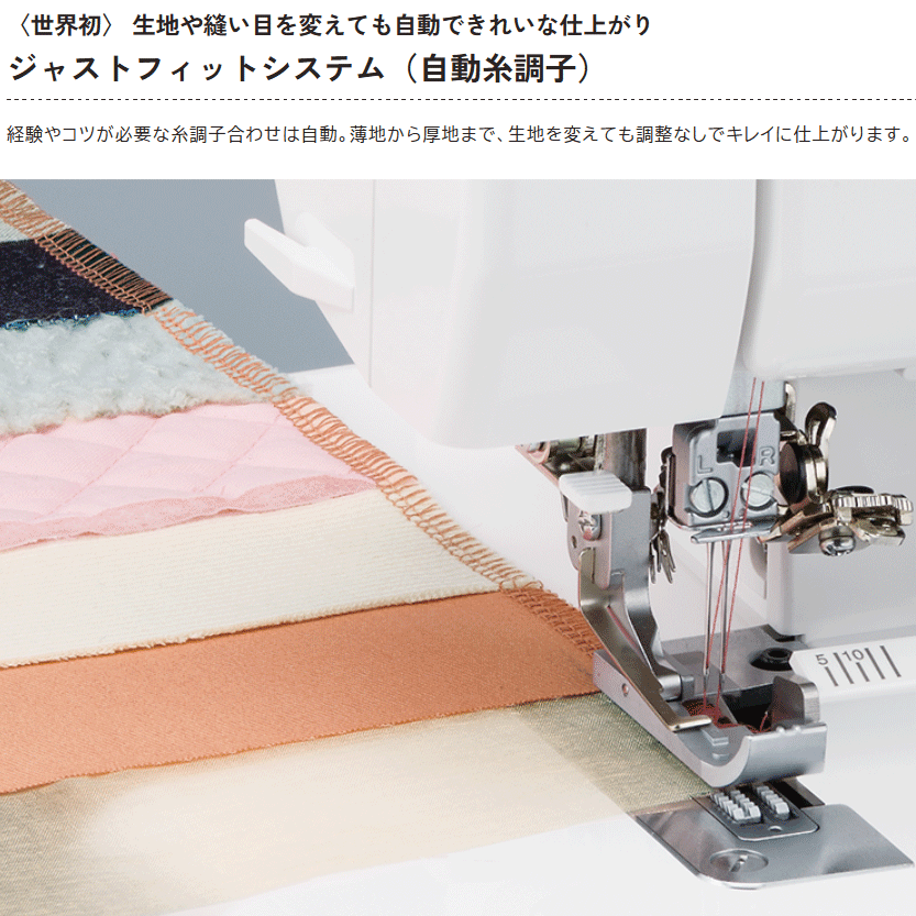 自動糸通し、自動糸調子のあるロックミシンが欲しくて探していました。2月の下旬から、大幅に値上げになることを知り、多店舗とも比べましたが、糸くず受けや、マットがついていて、アタッチメントセットも本体もお安く購入でき、壊れても車で持って行きやすい都内に会社があるマイミシンさんに決めました。