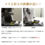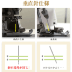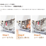 これまで上下ルーパー1本づつ通していた、衣縫人、糸取物語のエアスルーレバーとは異なり、ジェットエアボタンで2本同時にルーパー糸を通します。