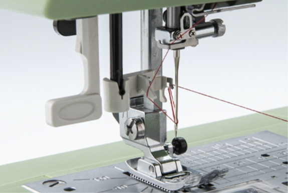 針穴への糸通しも片手でサッと簡単。糸通し器が下がった状態で一度止まるので、操作しやすくスピーディーに糸を通すことができます。