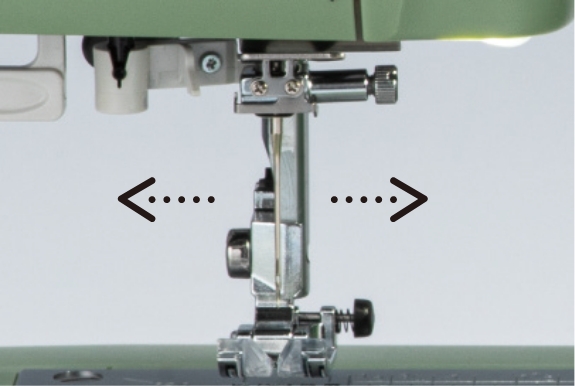 直線状のぬい模様は、中央針位置から左右に針が動かせるので、ぬうものに合わせて針位置を変更できます。