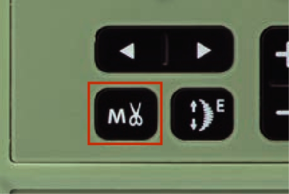 糸切り記憶ボタンを押すと、ほつれ止めぬいが入っている模様のぬい終わりで、自動的に糸をカットします。