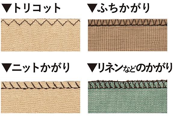 かがりぬいの種類が豊富なので、生地の種類などによって使い分けられます。