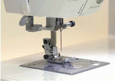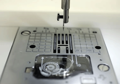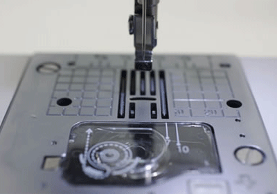 通常、生地は送り歯によって後方に真っ直ぐ送られますが、送り歯を下げることにより、生地を自由に動かせるようになります。