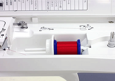 ブラザー製のミシンは糸コマ全面配置が多いですが、JUKIも商品開発にあたり、その利点を採 用しました。