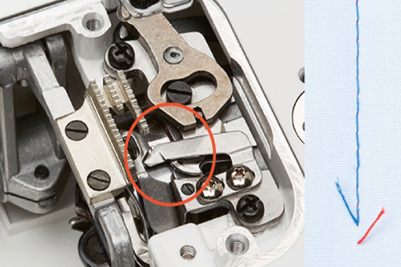 軽金属製により押え圧を低減し、さらに針穴を小さくすることで運針による生地の持ちあがりを防ぎます。 目飛びやパッカリング(縫い縮み)を最小限に抑える効果があります。 |
