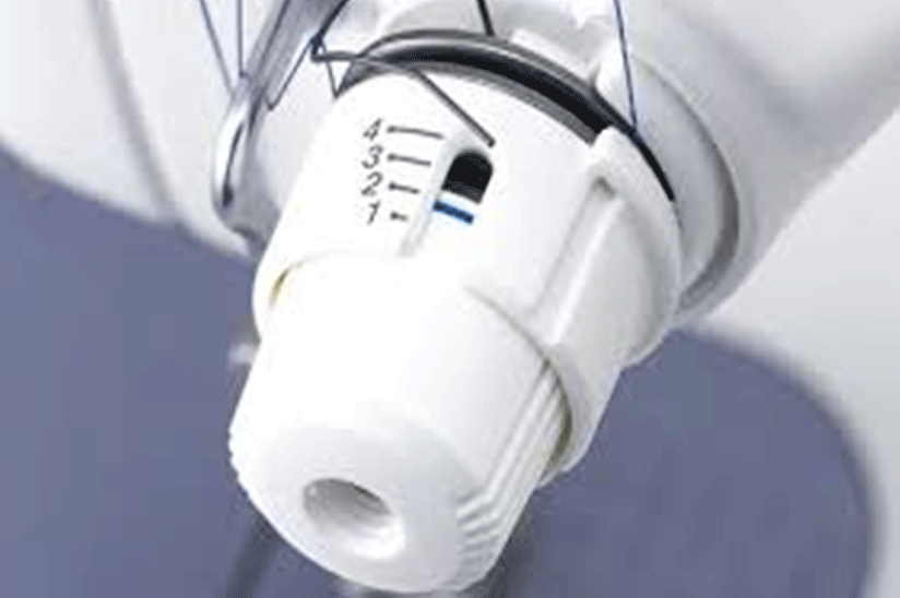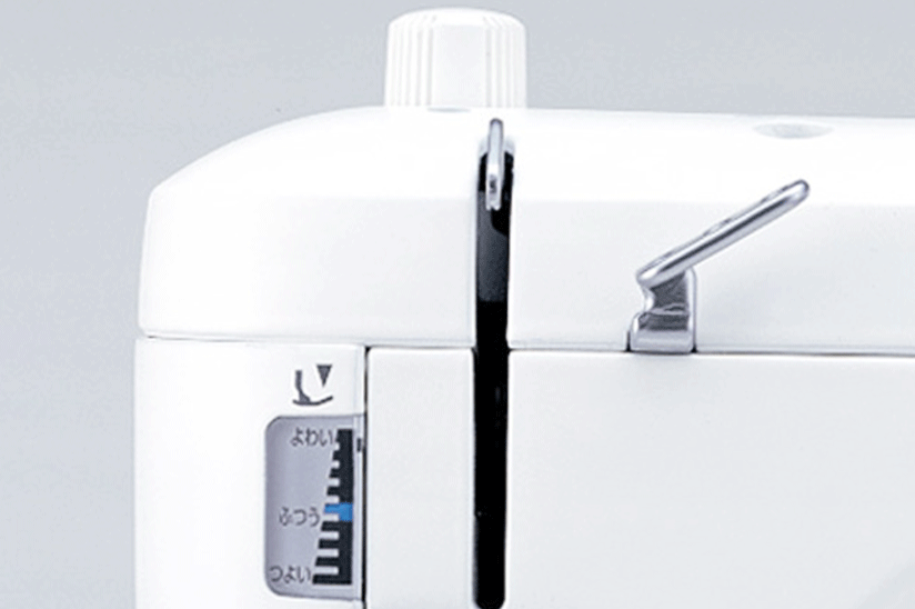 薄地から厚地など素材に合わせて押え圧の変更が可能、目盛り表示されており操作が簡単です。