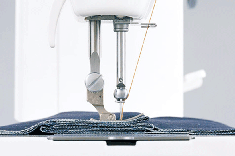 最高速、毎分1500針! (家庭用ミシンの場合毎分800針前後) 職業用ミシンならではの大型モーターで、オーガンジー等の薄地から合皮、帆布の様な厚地まで、 家庭用ミシンでは縫いにくかった生地が、 楽に綺麗な縫い目で縫うことができます。 8オンスデニム14枚は楽に縫えます。素材により縫い枚数を異なる場合があります。