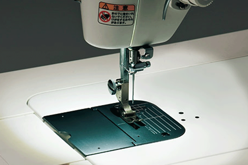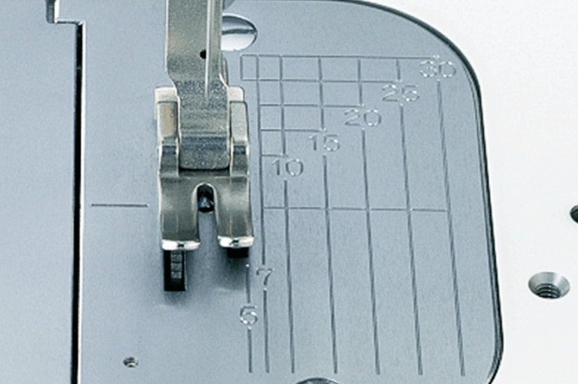 耐久性を重視したオール金属製針板を装備、針目盛りも付いていますので、針位置からの寸法が分かりやすく便利です。