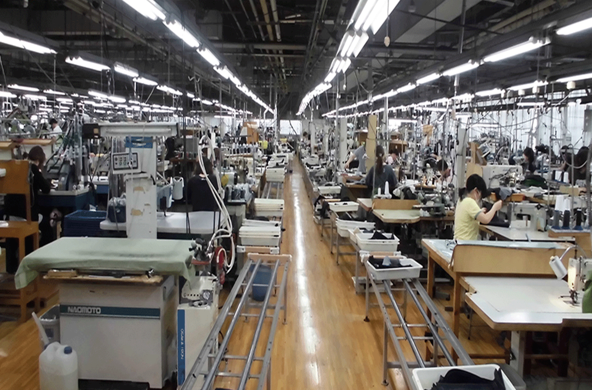 国内外、縫製工場の生産ラインのミシンには青英字でプリントされたのロゴが多く見られます。