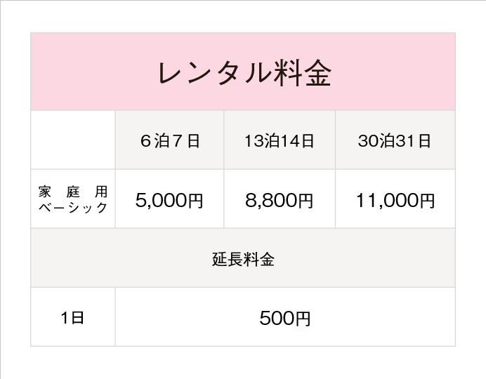 レンタル料金/家庭用ベーシック
