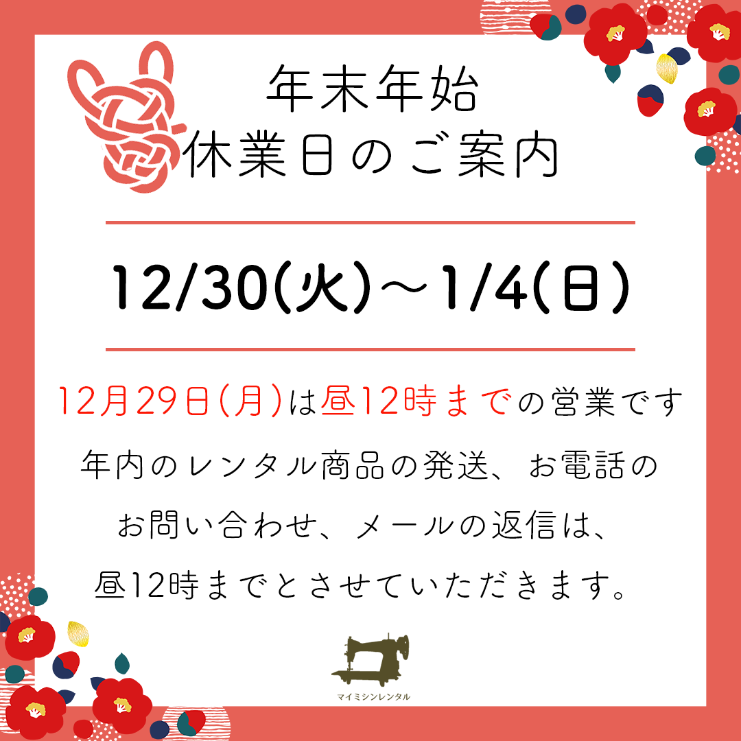 ▼レンタルの詳細(配送・破損・お支払い)、ミシン糸については当店までお問い合わせください。